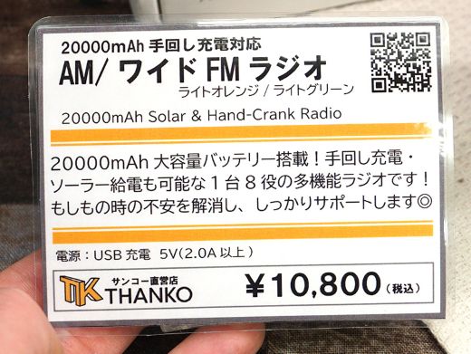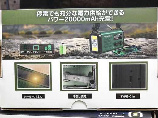 手回し充電/ソーラーパネル付きの2万mAhバッテリー内蔵ラジオがサンコーから