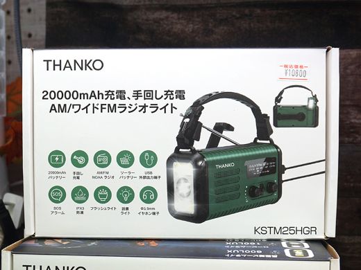 手回し充電対応バッテリー内蔵のポータブルラジオ「20000mAh、手回し充電対応AM/ワイドFMラジオ(KSTM25H)」がサンコーから登場。