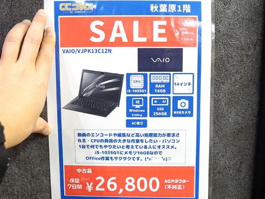 第10世代Core/16GBメモリ搭載の14インチVAIOが26,800円!中古PCセール
