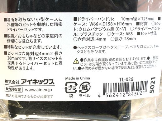 24ビット付属の精密ドライバーセット「TL-026」がアイネックスから発売。店頭価格は980円。