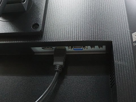 本体のサイズは約W540×D227×H520mm、重量は約5.3kg(電源内蔵型)。映像端子はHDMI 2.0×1、DisplayPort 1.2a×1、D-sub×1。ライン入力端子、ヘッドホン出力端子も装備する。