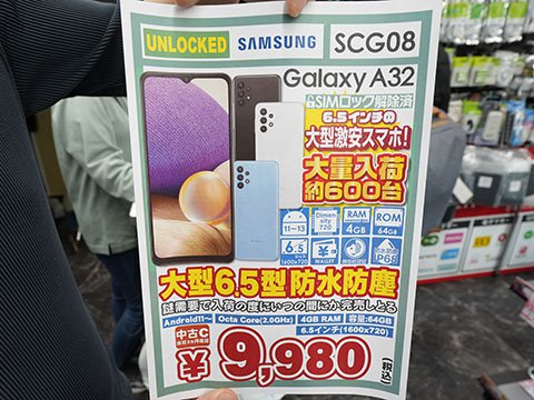 6.5型スマホ「Galaxy A32」が9,980円、中古品が大量入荷