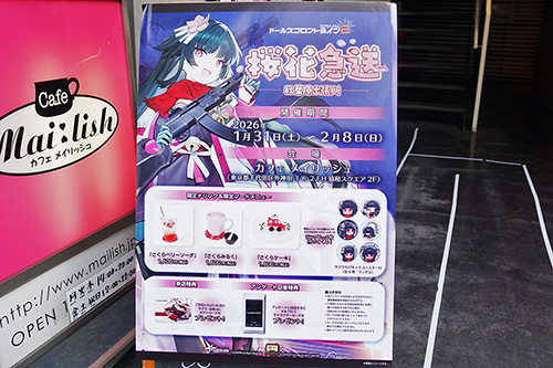 カフェ メイリッシュでは、「桜花急送 秋葉原出張所」が開催。「ドールズフロントライン2:エクシリウム」の新キャラクター「サクラ」の実装記念コラボカフェです。