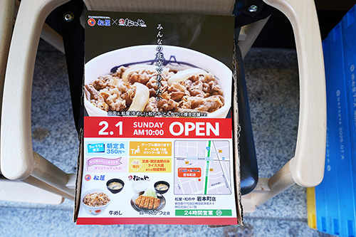 岩本町駅を少し越えた辺りに、「松屋・松のや岩本町店」が2月1日オープン。牛めしの「松屋」と、とんかつの「松のや」が一つになった複合店舗で、その日の気分で好きなメニューを選べるのが嬉しいポイントです。
