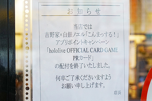 なお、取材時点でキャンペーンと連動したノベルティ「hololive OFFICIAL CARD GAME」のPRカードは好評につき配布終了となっていました。