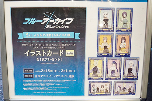 アニメイト秋葉原では、「ブルーアーカイブ」5周年記念オンリーショップの予告が掲載されていました。2号館の6階で開催予定で、期間は2月15日(日)~3月1日(日)まで。