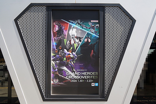 TAMASHII NATIONS STORE TOKYO では、「GRAND HEROES CROSSOVER FES」が開催されていました。「エヴァンゲリオン」、「シン・ゴジラ」、「シン・ウルトラマン」、「シン・仮面ライダー」といった、庵野監督関連作品のフィギュアが一堂に会する展示会となっています。開催期間は3月23日(月)まで。
