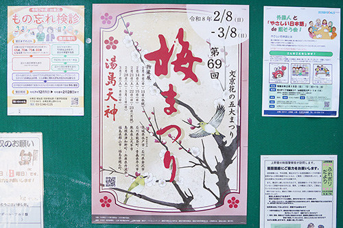 台東区掲示板に、「第69回 梅まつり」の開催告知が掲載されていました。毎年、湯島天満宮で開催される"文京花の五大まつり"の一つとなっています。開催期間は2月8日(日)~3月8日(日)まで。