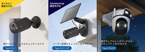 オンラインショップの価格は、Tapo C545Dが12,800円、Tapo C411 KITが10,800円、Tapo C411が9,800円。