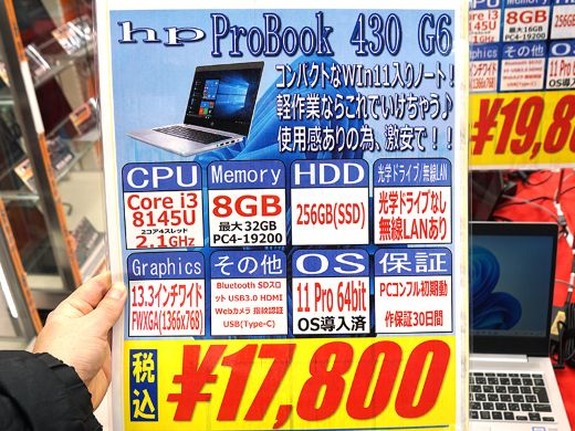第8世代Core搭載の13.3インチノート「ProBook 430 G6」が17,800円!中古PCセール