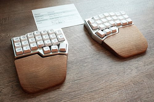 天下一キーボードわいわい会では、木目パネルを使ったキーボードも多数展示されていました。PCケースでも木目パネルは一部で人気がありますが、キーボードでも流行しているようです。個人的にはかなりアリなデザインです。