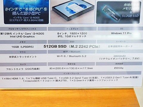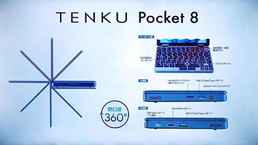8インチでCore i3-N305搭載のUMPC「TENKU Pocket 8」が発売、日本語キーボード搭載