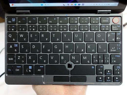 キーボードは日本語配列となっており、サイズの関係上変則配置ではあるものの、メインキーのキーピッチを確保し入力性に配慮したレイアウトとなっている。