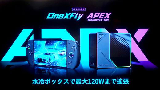 Ryzen AI Max+ 395やメモリ48GB搭載のモバイルゲーミングPC「OneXFly APEX」が近日発売、水冷ボックスにも対応