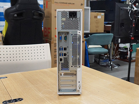 主な仕様は、搭載CPUがXeon E-2314(4コア/4スレッド)、メモリがDDR4-3200 UDIMM ECC 16GB(8GB×2/空きスロット×2)、ストレージがSAS HDD 600GB×3(RAID5)、OSがWindows Server 2019 Standardなど。