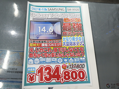 Samsung製14.6インチタブレット「Galaxy Tab S10 Ultra(SM-X920)」の未使用品が、イオシス各店でセール中。店頭価格は134,800円。保証期間は6か月。