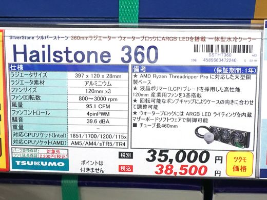 Ryzen TR Pro対応、SilverStoneの360mm水冷CPUクーラー「Hailstone 360」が店頭入荷