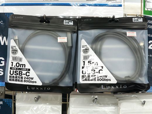 Luxxioブランドの製品で、長さ1m(LU-CCLC248010DN)と1.5m(LU-CCLC248015DN)の2モデル。店頭価格は順に3,280円、4,280円。