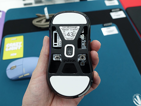 X2N CrazyLight Medium Gaming Mouseの本体サイズは124×65.5×40mm。重量はドットソール装着時が43g±2g、レギュラーソール装着時が45g±2g。