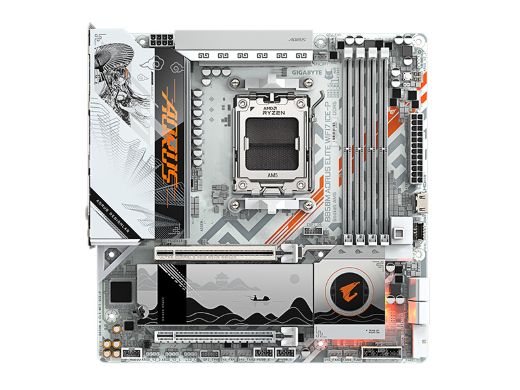 B850M AORUS ELITE WIFI7 ICE-Pは、GIGABYTEのイメージキャラクター神鷹凛の装飾が特徴のマザーボード。オールホワイトの外観や、12+2+2フェーズの電源設計が特徴。
