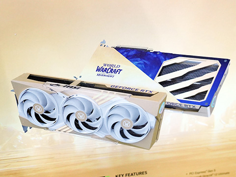 これらは、3連ファン仕様のクーラーを搭載したGeForce RTX 5070ビデオカード。World of Warcraft: Midnightとのコラボレーションモデルで、同ゲームをモチーフとしたクーラーデザインを採用している。
