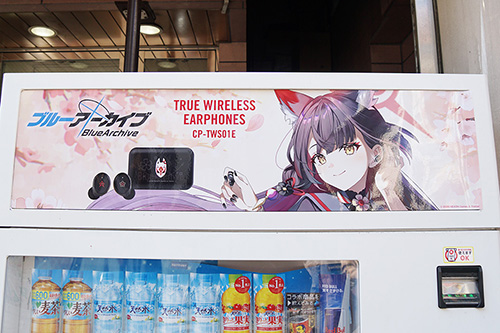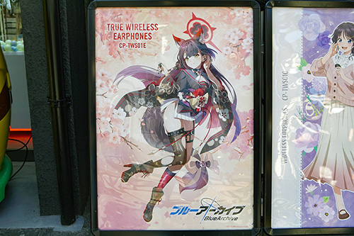 音アニ1号店では、「ブルーアーカイブ」のコラボワイヤレスイヤホンの店頭展示・受注販売が行われていました。ONKYOの完全ワイヤレスイヤホン「CP-TWS01E」とコラボレーションしたモデルとなっています。