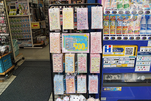 浜田電機の店頭では、「ちゅるんと立体シール」が500円で販売されていました。巷で話題になっているシールとは別のものではあるものの、可愛らしいデザインとなっています。