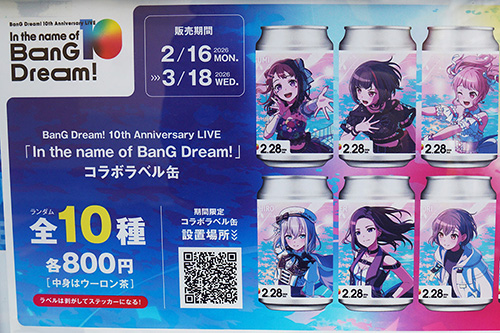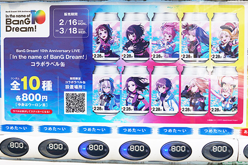 時間貸駐車場「エースパーク 外神田第1」の自動販売機では、「BanG Dream!」の10周年記念ライブ「In the name of BanG Dream!」とコラボレーションしたオリジナルラベル缶が販売されていました。1本800円で中身はウーロン茶、ラベルがステッカーになる仕様となっています。販売期間は3月18日(水)まで。