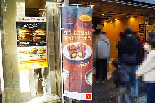 マクドナルド ビックカメラAKIBA店では、期間限定メニューの「クリームブリュレホットドーナツ」が販売されていました。