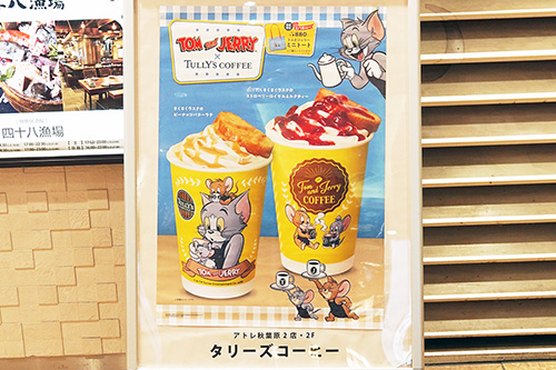 タリーズコーヒー アトレ秋葉原店では、「トムとジェリー」とコラボレーションしたメニューが期間限定で販売されていました。フード/ドリンクメニューの他コラボグッズの販売も行っています。