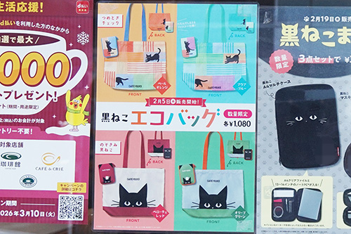 「黒ねこまみれ」などの黒ねこグッズを販売、カフェ・ベローチェ