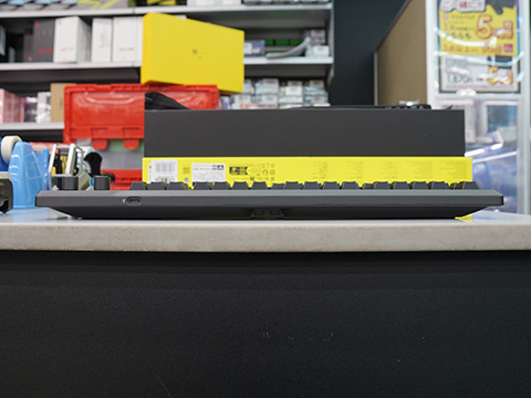 専用メディアキー、ボリュームローラー、コントロールホイール、インフォメーションディスプレイも装備。また、専用ホットキーによるWINロック、USBパススルー(USB 2.0 Type-A)などの機能も備える。