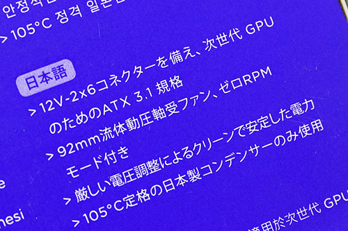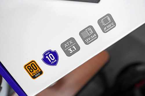 フルモジュラー方式のモデルで、ATX 3.1・PCIe 5.1に対応しており、最大600Wの電源供給に対応する12V-2x6コネクタを搭載。80PLUS GOLDとCybenetics PLATINUM/A-の認証を取得しており、保証期間は10年。本体サイズは125×100×63.5mmで、92mmのファンを搭載(セミファンレス機構採用)しています。