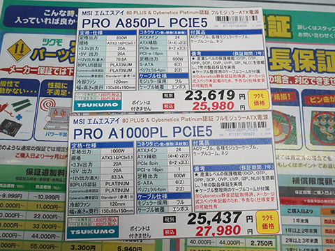 MSIの80PLUS PLATINUM電源「PRO A850PL PCIE5」「PRO A1000PL PCIE5」が登場、PCIe 5.1/ATX 3.1対応