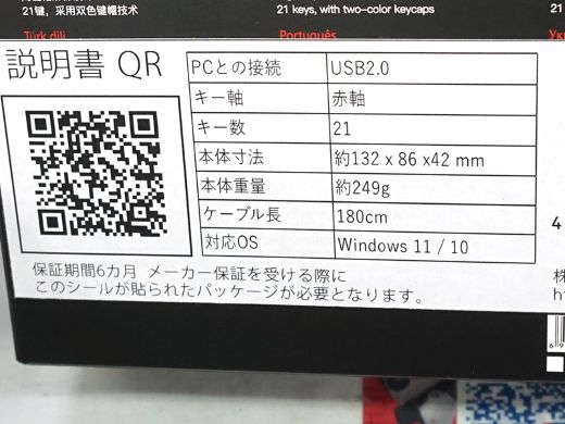 K24は、赤軸のメカニカルスイッチを搭載した有線式テンキーパッド。