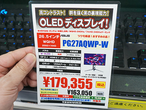タンデムOLED搭載モニター「ROG Swift OLED PG27AQWP-W」がTSUKUMOで展示中