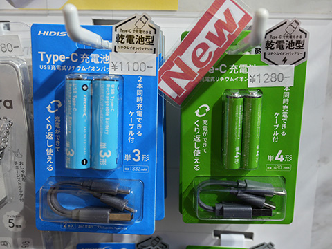 充電用のUSB Type-Cポートを備えたHIDISC(磁気研究所)ブランドの乾電池型リチウムイオンバッテリーが登場。