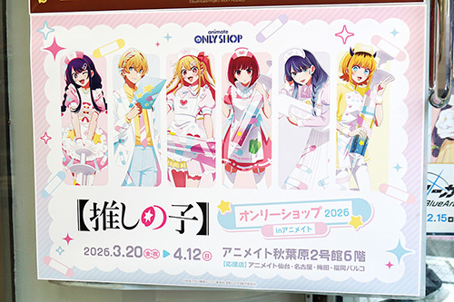 アニメイト秋葉原では、6階で開催される「探偵オペラミルキィホームズ」オンリーショップ(3月7日(土)~3月15日(日)まで)と、「推しの子」オンリーショップ(3月20日(金・祝)~4月12日(日)まで)の予告が掲載されていました。