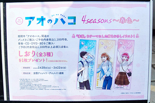 また、店内では「アオのハコ」フェアイベント「アオのハコ 4 seasons~春色~」が開催されていました。期間は3月22日(日)まで。