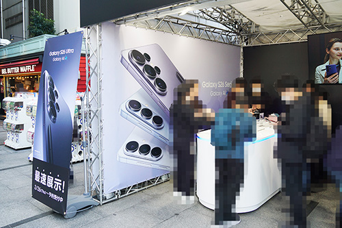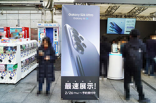ヨドバシカメラマルチメディアAkibaでは、「Galaxy S26」シリーズの展示・体験会が開催されていました。望遠カメラやSペンを搭載した最上位機種「Galaxy S26 Ultra」は特に人気が高く、多くの人が展示機を熱心にチェック。取材時にはなかなか触れないほど盛況でした。