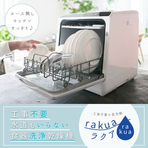 目玉商品の例を挙げると、水道いらずのタンク式食器洗い乾燥機 「ラクア」がセール価格33,060円、工事不要でシンク横に置けるタンク式食洗機「ラクアmini」が同21,420円。