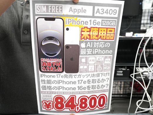 「iPhone 16e」が84,800円!未使用品セール