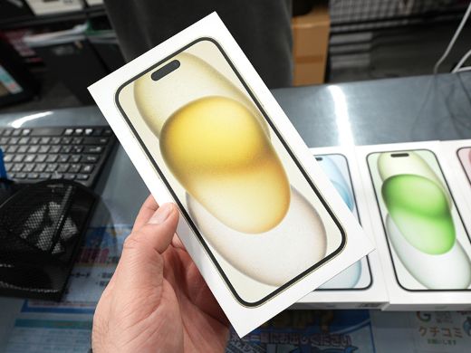 入荷したのは「カナダ版SIMフリーモデル」(同店)で、本体カラーはブラック/ピンク/グリーン/ブルー/イエローの5色。ストレージ容量の違いで128GB・256GB・512GBの各モデルが販売されており、価格は順に104,800円、119,800円、124,800円。