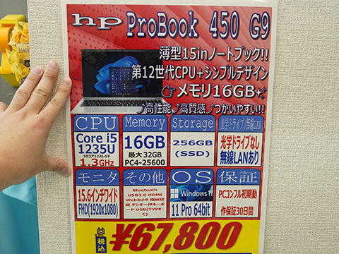 10コア(Pコア2、Eコア8)/12スレッドのCore i5-1235Uを搭載した15.6インチノートPC「ProBook 450 G9」の中古品が、PCコンフル 秋葉原3号店でセール中。