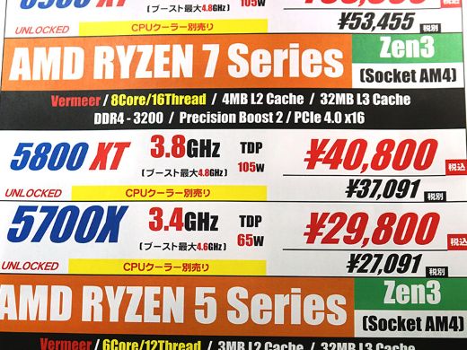 「Ryzen 7 5800XT」のCPUクーラー無しモデルが入荷、AM4環境のアップグレードに