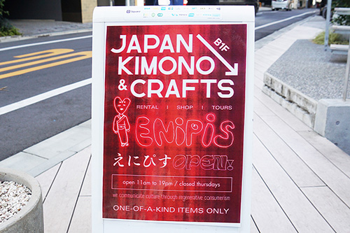 オフィスビル12 KANDAの地下1階に、ヴィンテージ品の着物やリメイク品などを扱うファッション店「ENIPIS」がオープンしていました。
