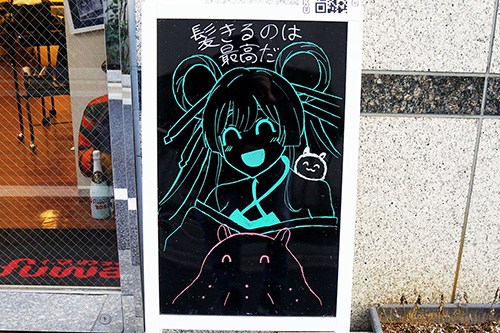美容室fuwatの店頭黒板が更新。「超かぐや姫!」のイラストになっていました。