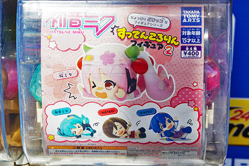 桜ミク入りの「初音ミク すってんころりんフィギュア2」など、アキバで見かけたカプセルトイ