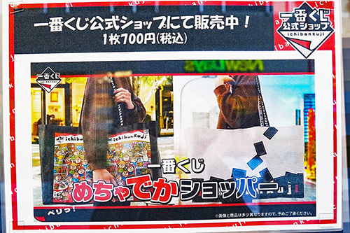 一番くじ公式ショップ 秋葉原店では、「一番くじ めちゃでかショッパー」が販売されていました。1枚700円で絵柄は2種類、公式ショップ限定での販売となっています。