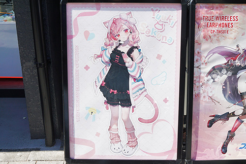 音アニ1号店では、VTuber「結城さくな」のコラボワイヤレスイヤホンの店頭展示・受注販売が行われていました。ONKYOのワイヤレスイヤホン「CP-TWS01E」とコラボレーションしたモデルとなっています。